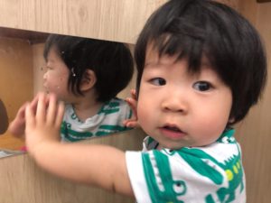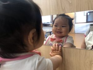 鏡に自分の姿を見つけるとにっこり😊
