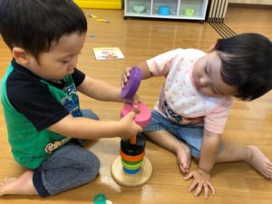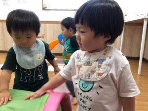 真剣に型はめをしています😌
