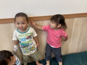 Kちゃんがよく耳を触るので、それを見て触りたくなったお友達がお友達同士で触りあっている様子をよく見るようになりました。
