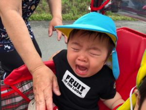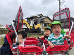 ショベルカーに、“怖い〜😭!“ とびっくり💦