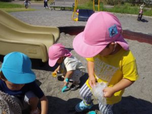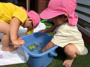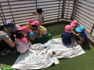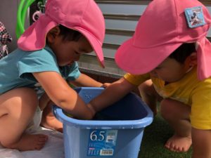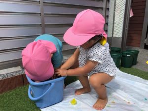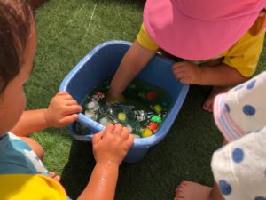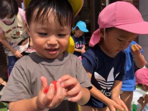 保育園に帰って、色氷で遊びました😉🌈