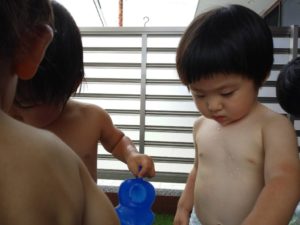 お水遊びは楽しいね☺️