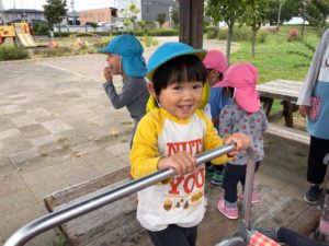 ベンチに乗って、ぴょんぴょんぴょん!🐰