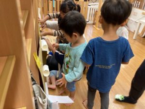 大きい子たちは、どんぐり転がしの装置を作りました✨