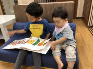 こっちでは電車の絵本を見ていたね😌❤️