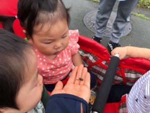 カエルさん🐸に興味津々🙂