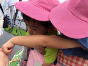 カエルさん🐸に興味津々🙂