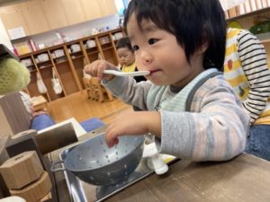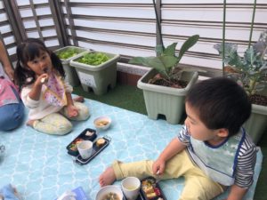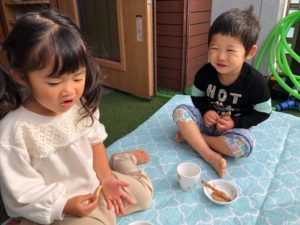小さい子たちは、お部屋の中でピクニックの練習を✨