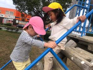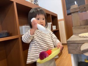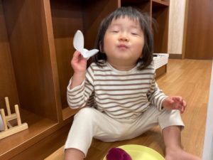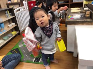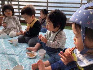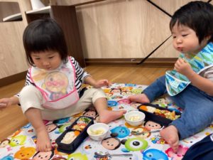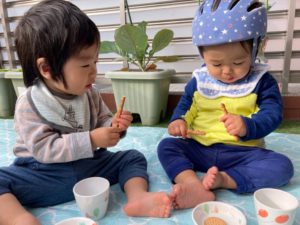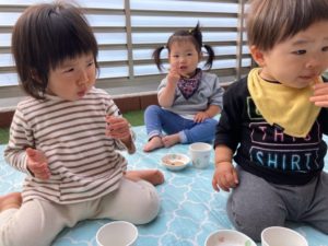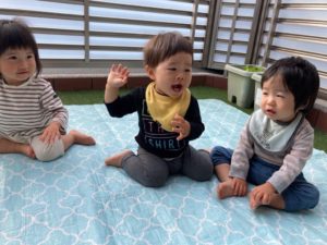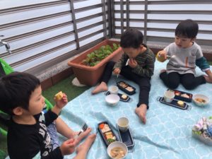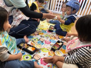 小さい子たちは、お部屋の中でピクニックの練習を✨